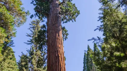 Famoso por sus secuoyas gigantes, montañas elevadas, cañones profundos y ríos estruendosos, este tándem de parques tiene mucho para ver, a pesar de ser menos conocido que Yosemite, unas 75 millas/120 kilómetros más al norte. Dentro de los límites de Sequoia y Kings Canyon se encuentran el monte Whitney, el pico más alto de los estados contiguos del país, con una altura de 14.494 pies/4417 metros, y el Kings River Canyon, uno de los cañones más profundos de América del Norte. Aún así, estos parques, al igual que el Monumento Nacional a la Secuoya Gigante y las tierras forestales nacionales, son los más venerados por sus secuoyas de gran tamaño. Gracias al árbol General Sherman, el ser vivo más grande del mundo, y a sus colosales vecinos, la actividad más popular aquí es admirar grandes árboles con la boca abierta. El árbol General Sherman mide 103/31 metros de diámetro y se eleva a 275 pies/84 metros adentrándose en el cielo azul de la sierra... y sigue en crecimiento. Todos los años agrega suficiente madera como para formar otro árbol alto de 60 pies/18 metros. ¿Todavía no puedes tomar dimensión del tamaño? Una sola rama del General Sherman es tan grande, casi 7 pies/2 metros de diámetro, que supera el tamaño de la mayoría de los árboles que crecen al este del río Misisipi.